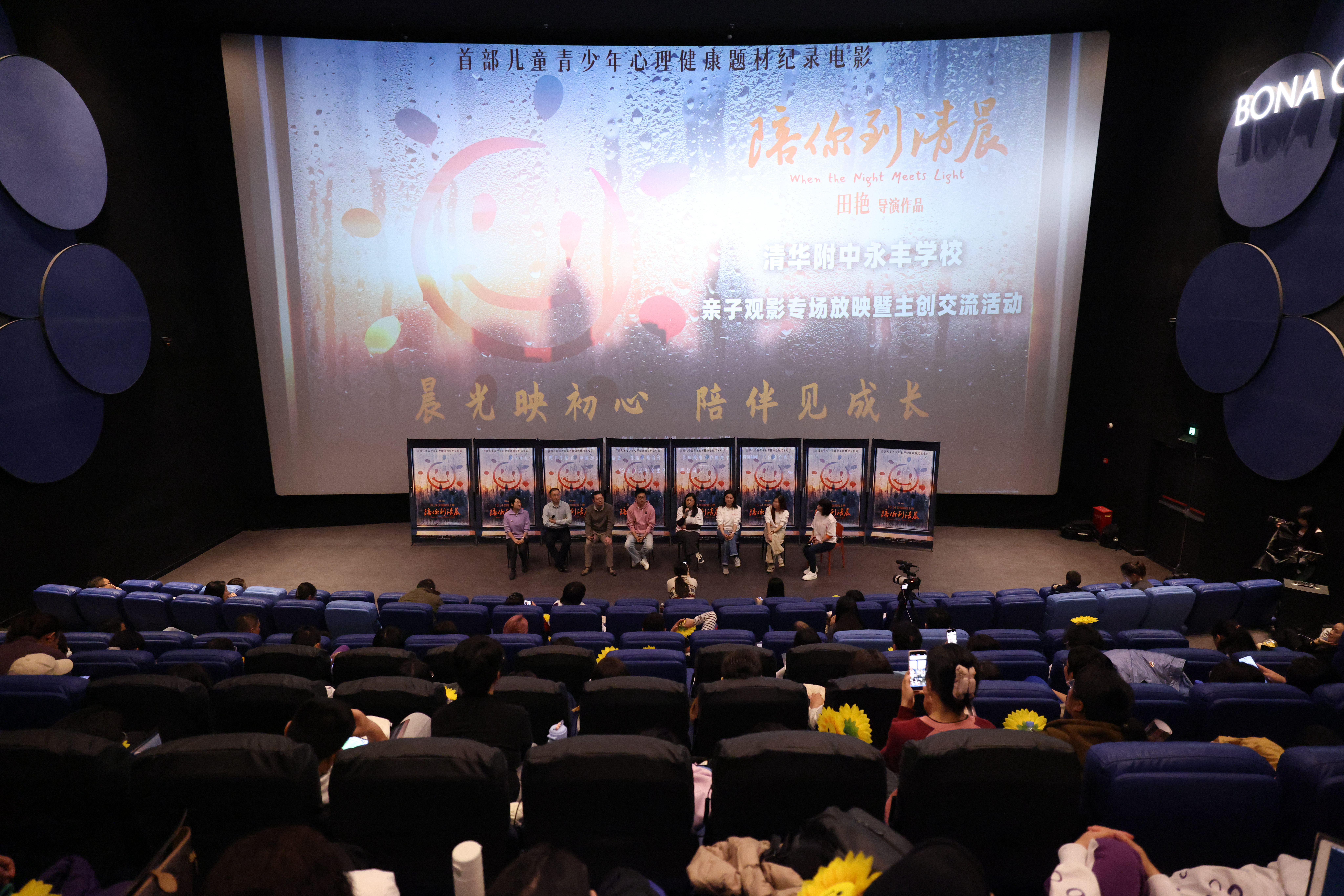 为深耕青少年心理健康教育,搭建家校社协同育人桥梁,11月22日,清华附中永丰学校举办纪录电影《陪你到清晨》亲子观影专场放映暨主创交流活动。学校来自小学4-6年级、初一到高三的学生及家长代表共200余人观看了影片并参与映后交流活动。